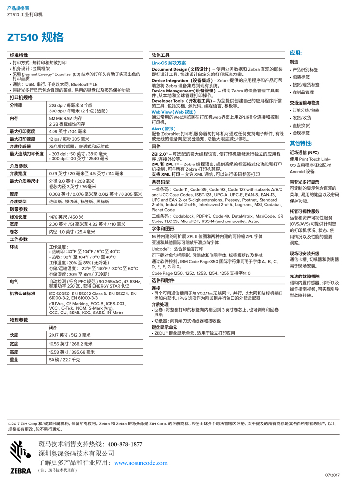 ZT510產(chǎn)品介紹: ZT510是以105SL Plus打印機功能為基礎(chǔ),以經(jīng)濟高效的價格點,為您提供所需的工業(yè)級打印機核心功能。ZT510采用久經(jīng)驗證、堅固耐用的設(shè)計和結(jié)構(gòu),同時增加了先進的管理和監(jiān)控功能。不僅可以實現(xiàn)每天24小時不停歇的穩(wěn)定順暢運行,還具備出色的使用壽命和先進的功能,并且價格經(jīng)濟實惠!ZT51