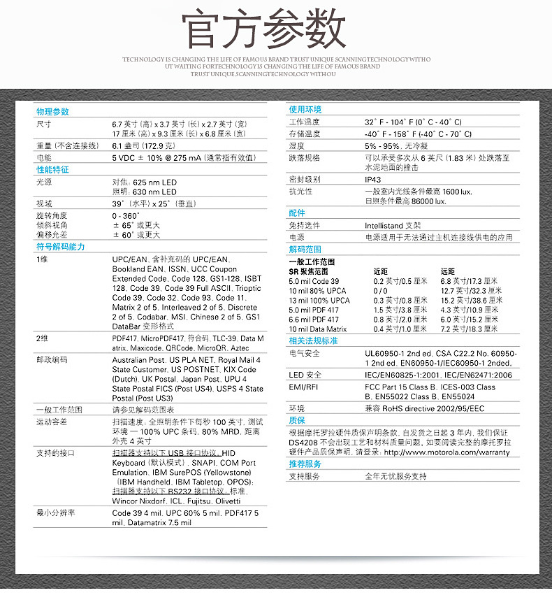 Symbol訊寶DS4208二維掃描槍手持式讀碼槍超市收銀快遞