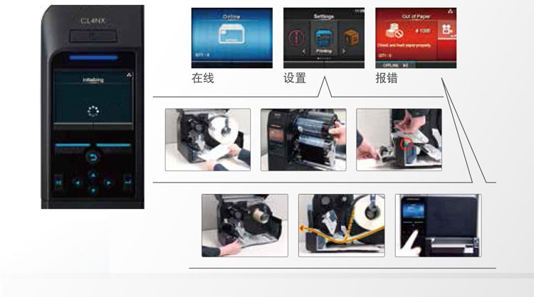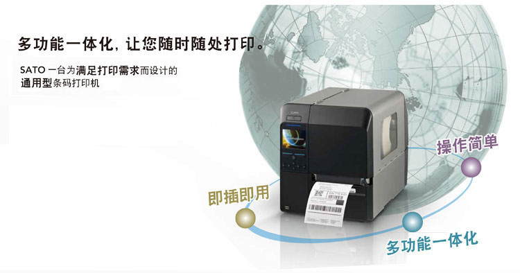 佐藤SATO CL4NX系列智能工業(yè)型條碼標(biāo)簽打印機(jī)特點(diǎn) 1、頂級人性化操作,3.5英寸全彩色顯示屏,帶有30種用戶可選語言的內(nèi)置視頻教程; 2、頂級易維護(hù)設(shè)計(jì),免工具更換打印頭和滾軸; 3、頂級打印質(zhì)量,對應(yīng)各種耗材; 4、同類最佳耐用性及小巧型,鋁