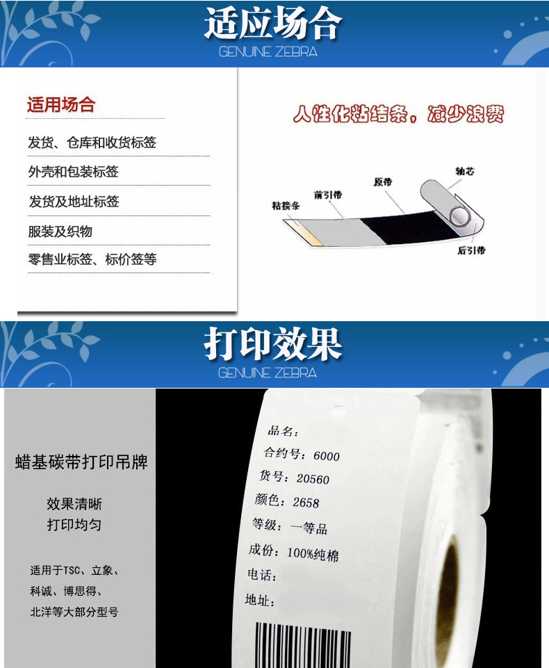 zebra碳帶 蠟基碳帶50~110mm 300m條碼打印機標簽斑馬碳帶銅版紙?zhí)紟?/h1>