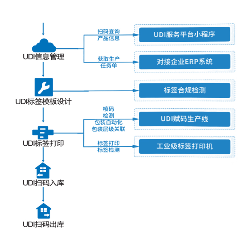 醫(yī)療器械全生命周期流程監(jiān)管,UDI務平臺通過UDI數(shù)據(jù)實現(xiàn)完整的產(chǎn)品數(shù)據(jù)鏈條追溯,協(xié)助企業(yè)快速高效建立滿足國家市場監(jiān)管與國藥監(jiān)醫(yī)械監(jiān)管的追溯平臺。